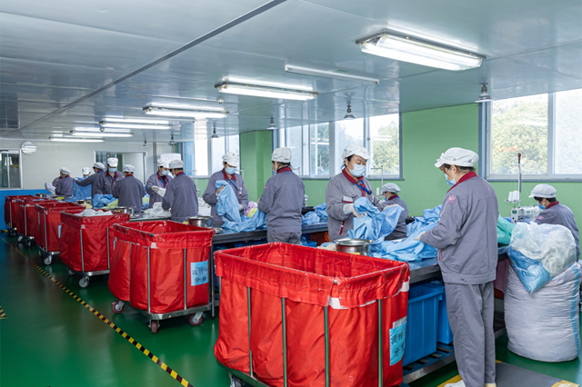 公司配有自营车队,厢式货车十五辆,可承接江浙沪等地的客户衣物。自有厂房面积:9000多平方米,产能:1万套/天。